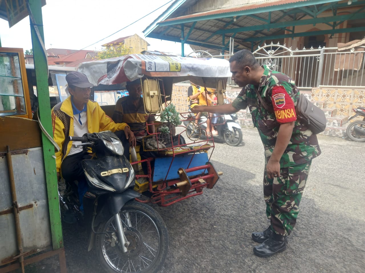 Di tempat yang lain Danramil 06/Kota Mayor Inf Agustinus Samosir menyampaikan” dengan hadirnya Babinsa di wilayah binaan dapat memberikan hasil yang maksimal terutama terhadap ketertiban bermasyarakat baik dalam hal apa pun itu, sesuai dengan harapan kita bersama TNI hadir untuk mengatasi kesulitan rakyat, dengan adanya Komunikasi sosial dengan abang becak memberikan himbauan serta mengupayakan memberikan pemahaman tentang perlunya tertib berlalulintas lintas agar tidak terjadinya hal hal yang tidak diinginkan”Ungkap Danramil.