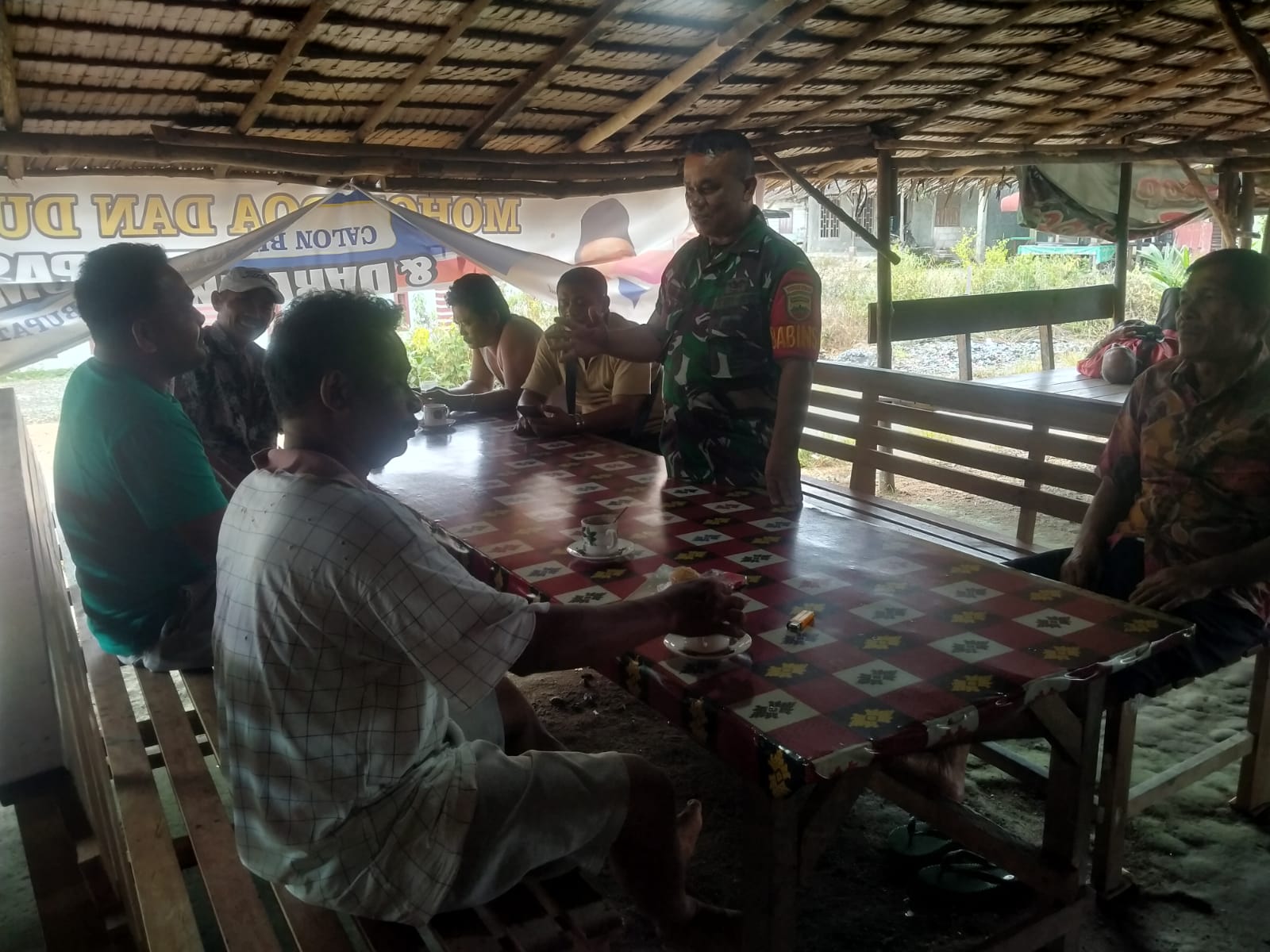 Sertu Azhar Sihotang dalam kegiatan Komsos di salah satu warung pak Ando Siregar , yang mengatakan, kegiatan ini untuk mencerminkan rasa kemanunggalan TNI khususnya Babinsa kepada masyarakat di wilayah binaan. Tujuan Komsos ini juga untuk mengetahui perkembangan situasi di wilayah binaan, dengan adanya interaksi komunikasi Babinsa dengan warga akan dapat mempererat hubungan TNI dan Rakyat.