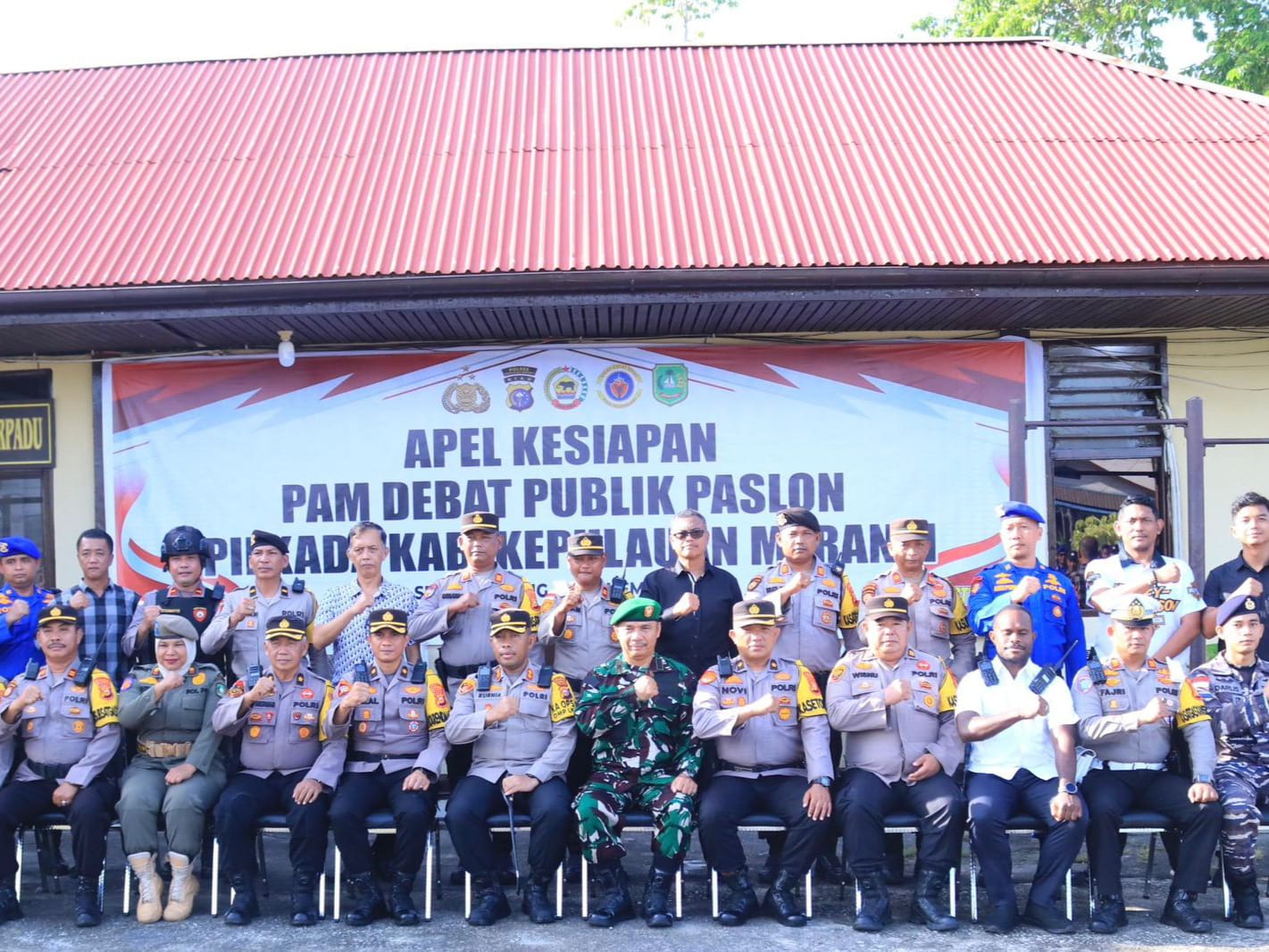 kegiatan Apel Kesiapan dan Gladi Pengamanan Debat Publik Pertama dipimpin langsung oleh Kapolres Kepulauan Meranti AKBP Kurnia Setyawan, SH SIk, ini melibatkan personel gabungan dari Polri, TNI, Sat Pol PP.