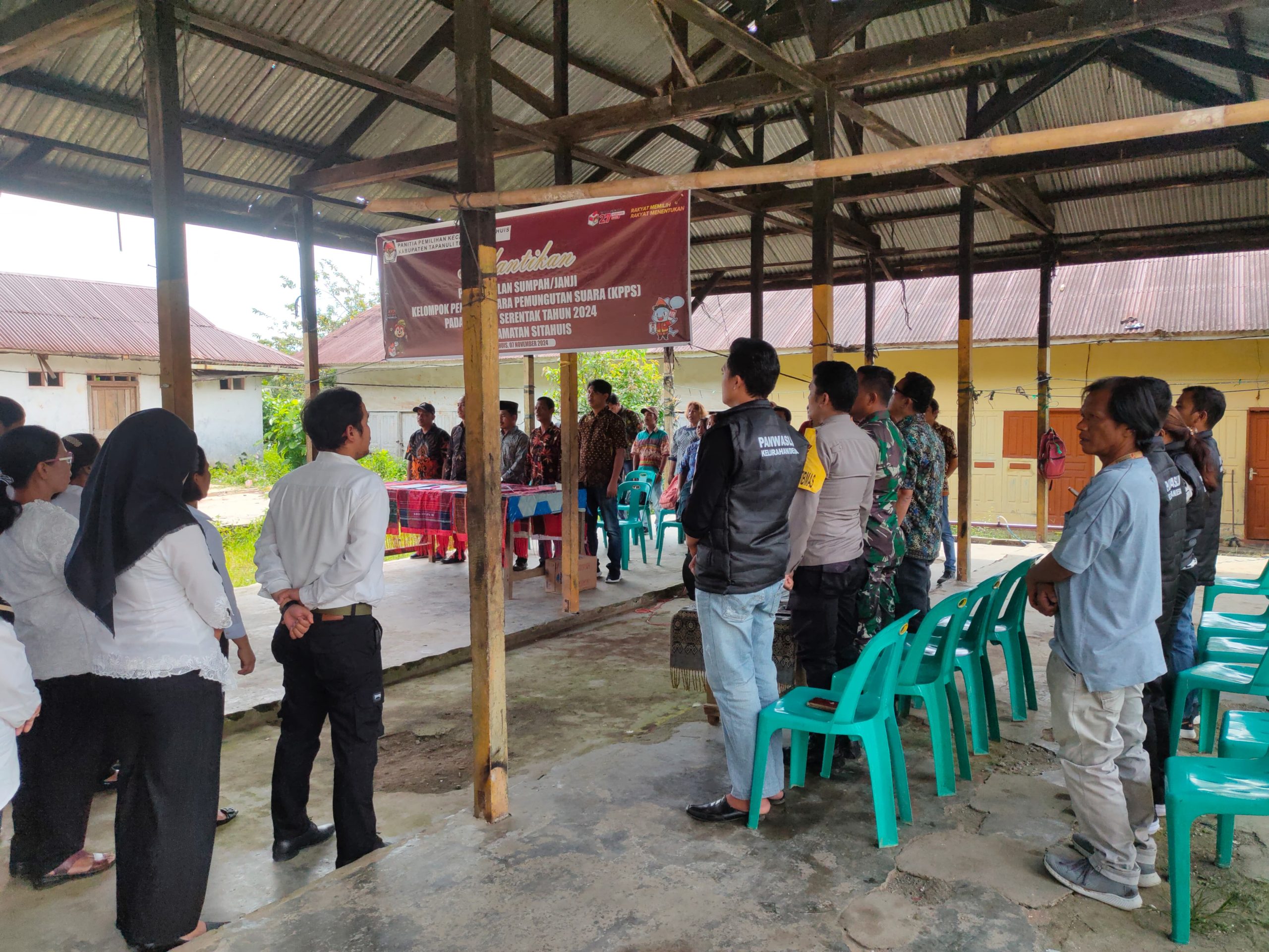 Ketua PPK Sitahuis Bangun Simatupang, memimpin prosesi pengambilan sumpah bagi seluruh Kelompok penyelenggara pemungutan suara (KPPS). Dalam sumpahnya, para pengawas TPS berikrar untuk menjalankan tugas dengan penuh tanggung jawab, netralitas, dan menjaga kehormatan dalam pengawasan proses Pilkada di wilayah masing-masing.