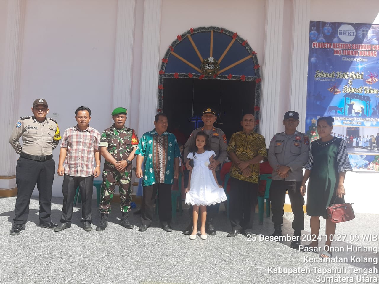 Tapteng – Memberikan rasa aman dan nyaman bagi Umat Kristiani, seluruh jajaran Babinsa Koramil 05/Kolang Kodim 0211/TT melaksanakan pengamanan jalannya ibadah Natal Tahun 2024 tersebar di Gereja yang ada di wilayah teritorial Koramil 05/Kolang, Di Gereja HKI Kolang, Kec. Kolang, Kab. Tapanuli Tengah.