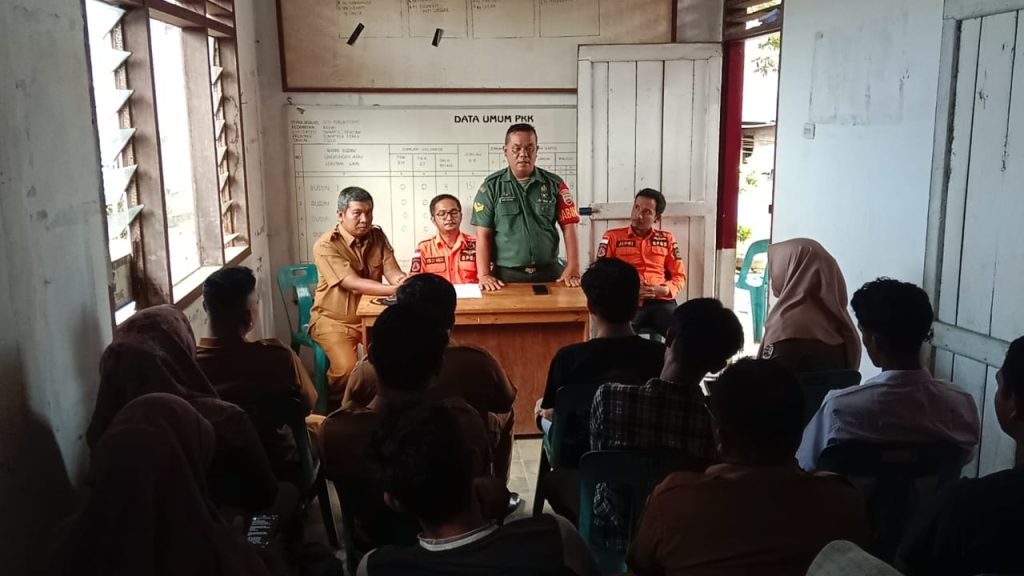 TAPTENG – Babinsa Koramil 04/Pinangsori jajaran Kodim 0211/Tapanuli Tengah, Senin 12 Mei 2025. Sertu A Sihotang Melaksanakan Giat Rapat Simulasi Kebakaran dikantor Desa Kebun Pisang Kec. Badiri Kab. Tapanuli Tengah.