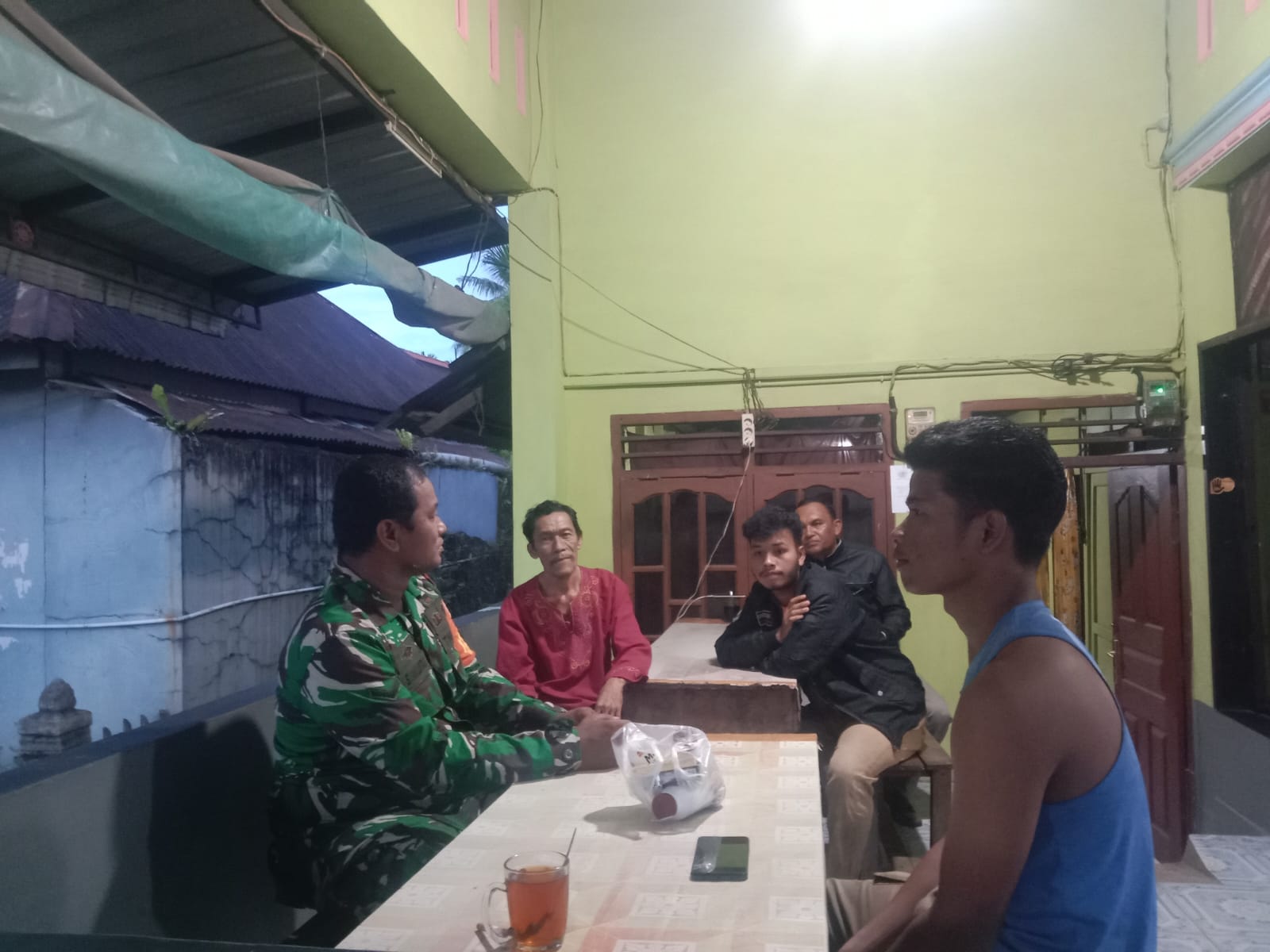 Serda Armin Simanjuntak mengatakan Kegiatan ini merupakan salah satu bentuk silaturahmi Babinsa dengan masyarakat yang ada di wilayah binaan, sambil bercerita Babinsa dapat menyerap informasi dari warga terkait informasi yang berkembang di wilayah binaan.