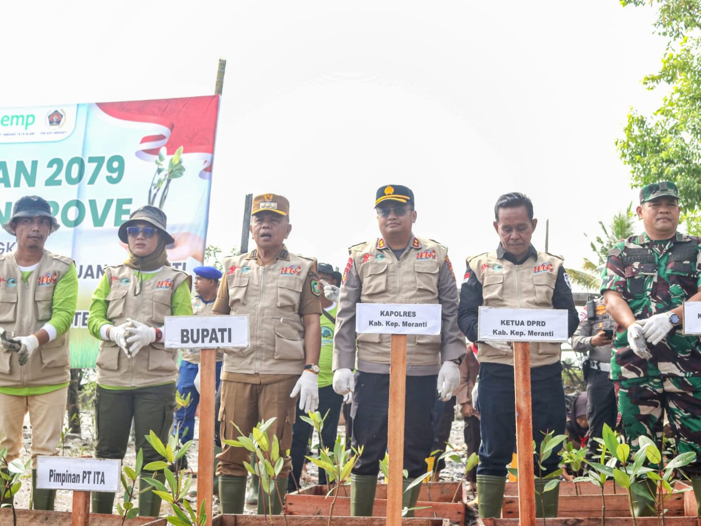 Cctv24jam. Meranti– Dalam rangka memperingati Hari Bhayangkara ke-79, Polres Kepulauan Meranti bersama sejumlah pihak melaksanakan kegiatan penanaman 2.079 pohon mangrove di Pantai Desa Mekong, Kecamatan Tebing Tinggi Barat, Rabu (17/6/2025). Kegiatan ini dihadiri langsung oleh Bupati Kepulauan Meranti AKBP (Purn) H. Asmar 17 Juni 2025.