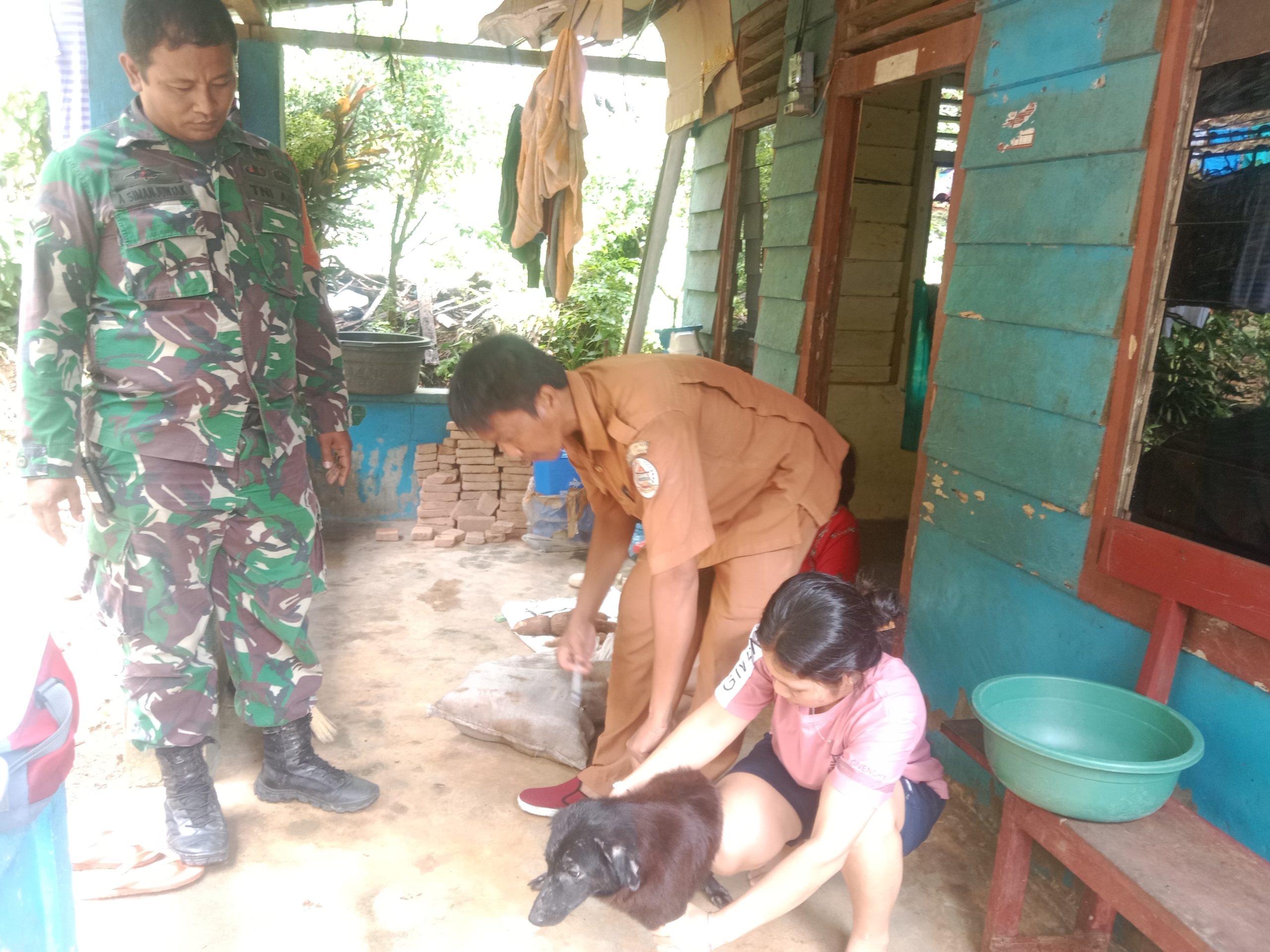 Tapteng -Babinsa Koramil 05/Kolang Kodim 0211/TT Serda Armin Simanjuntak mendampingi kegiatan Vaksin Rabies terhadap hewan peliharaan di Desa Bair, Kecamatan Tapian Nauli, Kabupaten Tapanuli Tengah. Rabu (18/06/2025)