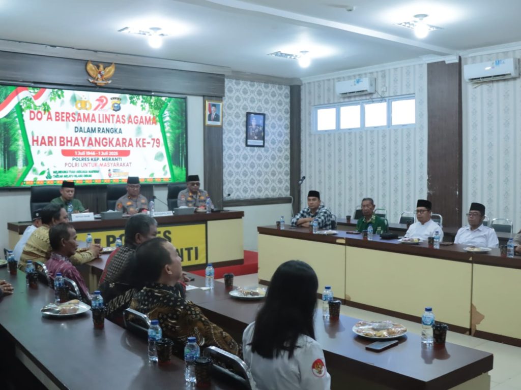 Kapolres Kepulauan Meranti AKBP Aldi Alfa Faroqi SH SIK diwakili oleh Wakapolres Kompol Maitertika SH MH mengatakan Doa bersama lintas agama menunjukkan bahwa perbedaan keyakinan tidak menghalangi upaya bersama untuk menciptakan kedamaian dan ketertiban masyarakat.