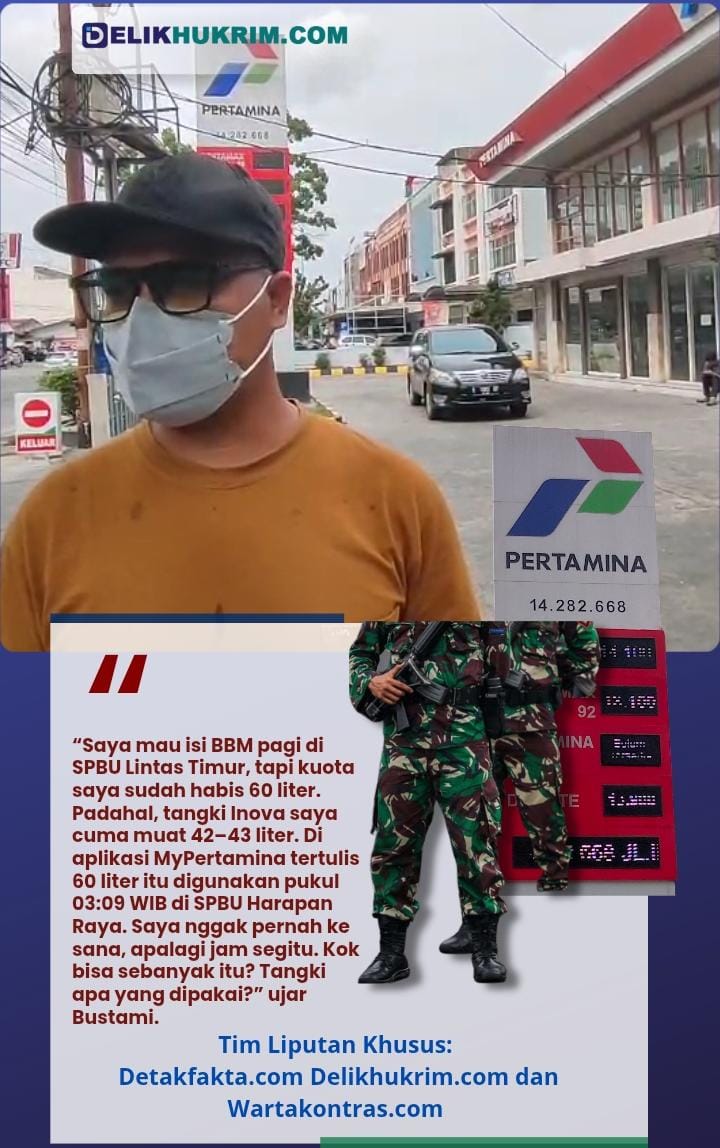 Yang lebih mencengangkan, saat Bustami mendatangi SPBU Harapan Raya pada malam hari sekira pukul 22.00 WIB, ia diarahkan oleh operator kepada seseorang pria yang mengaku sebagai pengawas SPBU sekaligus anggota TNI AU.