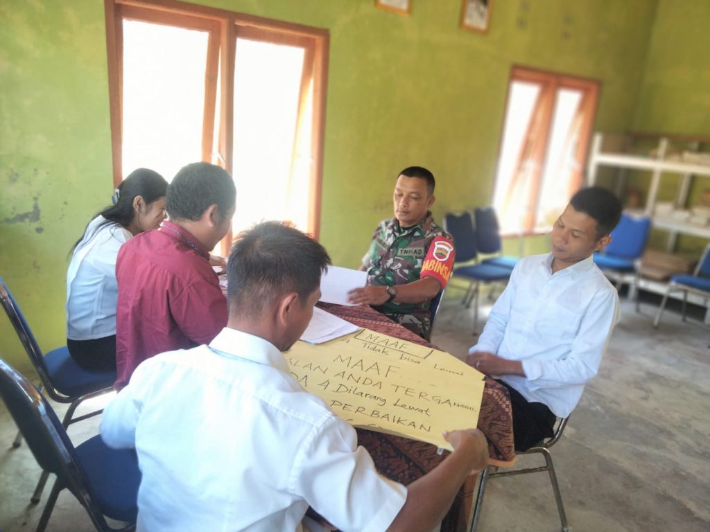 Tapteng_Koramil 01/ Barus Kodim 0211/TT,Serka Saripuddin Panggabean melaksanakan komunikasi Sosial Berama para kepala dusun desa Sawah lamo di kantor kepala desa Sawah lamo kecamatan andam Dewi,Kabupetan Tapanuli Tengah.Sabtu ( 26/07/2025).