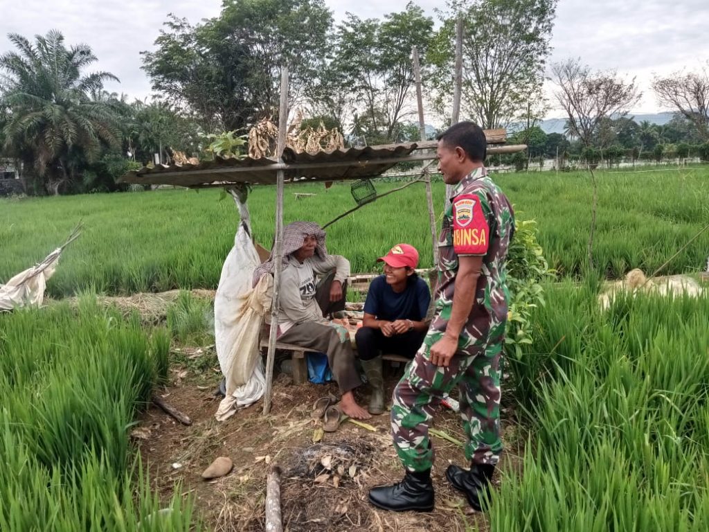 Kegiatan rutin Babinsa melalui komsos dengan Petani Padi dalam rangka pembinaan pemberdayaan guna meningkatkan produksi padi di wilayah binaanya.