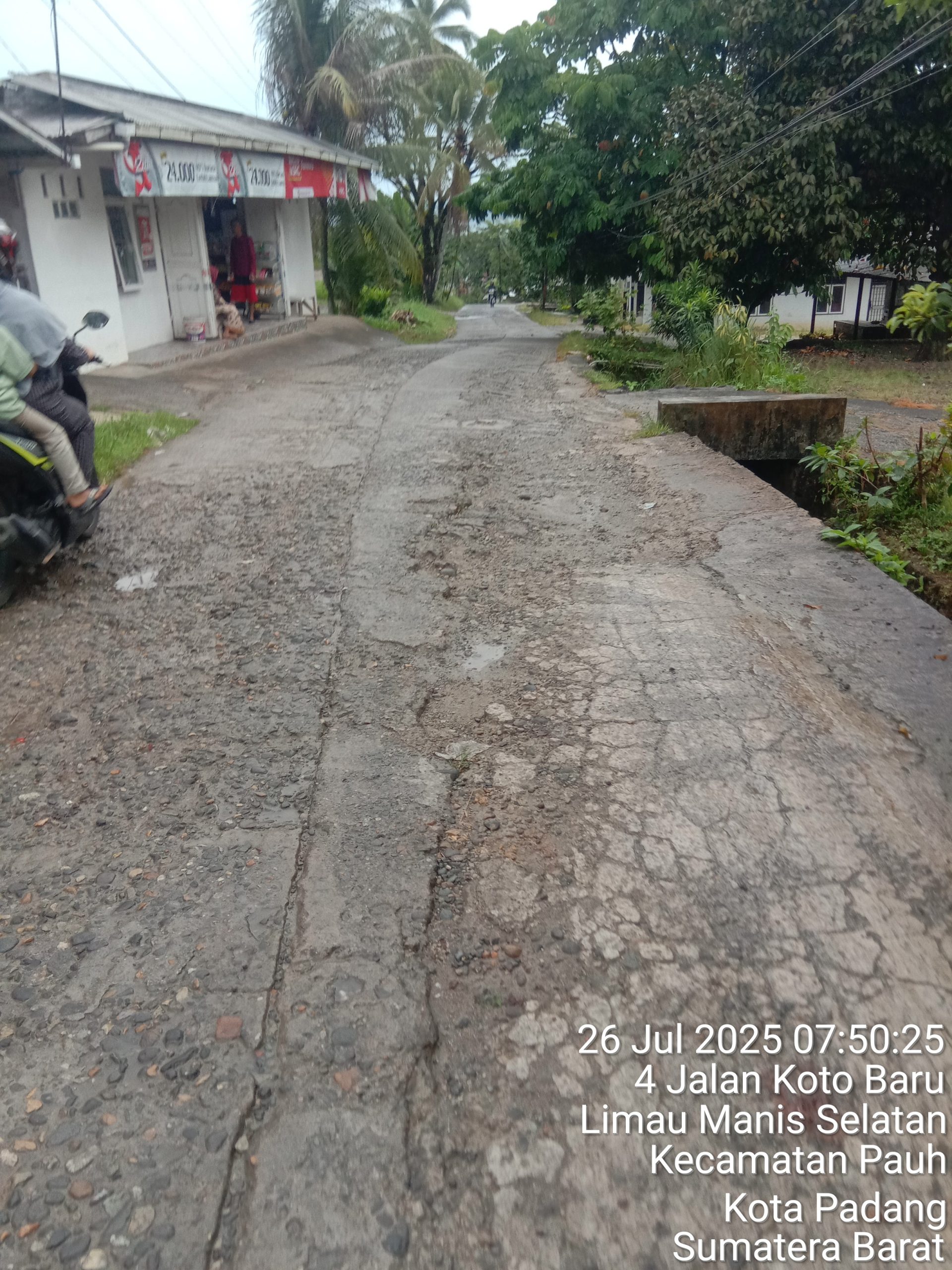 Padang, 26 Juli 2025 – Kondisi jalan di Jalan Koto Baru, Kelurahan Limau Manis Selatan, Kecamatan Pauh, Kota Padang, Sumatera Barat, kian memprihatinkan. Jalan utama yang menghubungkan pemukiman warga dengan berbagai fasilitas umum ini mengalami kerusakan cukup parah, dengan aspal yang retak, berlubang, dan permukaan yang tidak rata.