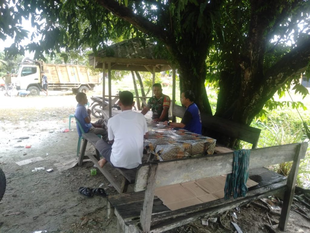 TAPTENG_Dalam membina kebersamaan dengan warga binaan, Serda Sufrianto Sibarani melaksanakan kegiatan Komunikasi Sosial (Komsos). Bertempat di salah satu warung, yang berlokasi di desa bondarsihudon I Kecamatan Andam dewi.Kabupaten Tapanuli Tengah.