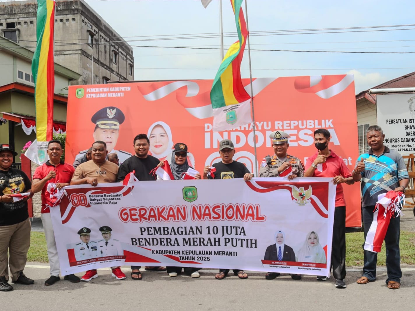 Beranda » Bupati Kepulauan Meranti Bagikan Bendera Merah Putih kepada Pengendara Jelang HUT RI ke-80