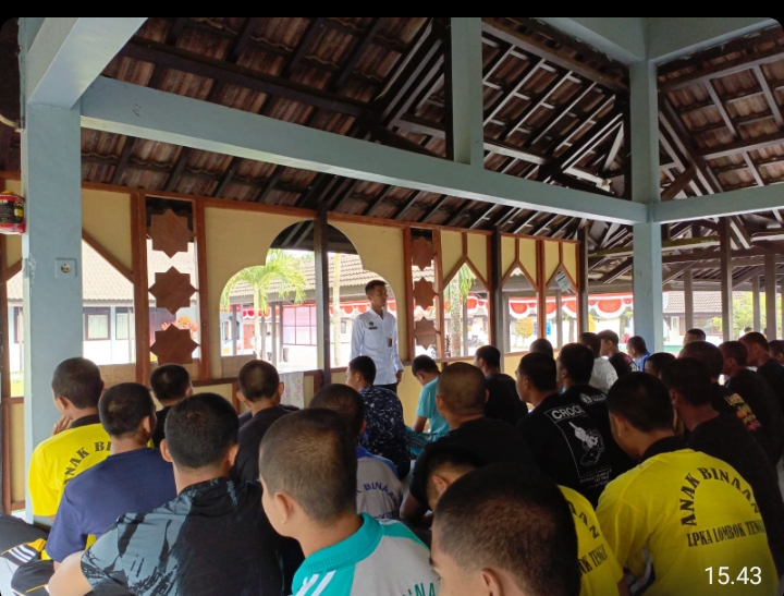 Lombok Tengah – Kepala Seksi Registrasi dan Klasifikasi Lembaga Pembinaan Khusus Anak (LPKA) Kelas II Lombok Tengah, Kantor Wilayah Direktorat Jenderal Pemasyarakatan Nusa Tenggara Barat, Ahmad Saepandi, memberikan pengarahan kepada anak binaan terkait Pengurangan Masa Pidana (PMP) umum, Selasa (19/08).