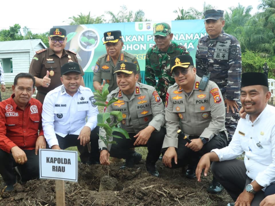 Masih di Desa Alahair Timur, rombongan turut melakukan Gerakan Penanaman Pohon Bersama yang menjadi bagian dari program Green Policing Polda Riau. Program ini bertujuan membangun budaya peduli lingkungan, mencegah krisis iklim, dan mengurangi risiko kebakaran hutan dan lahan.