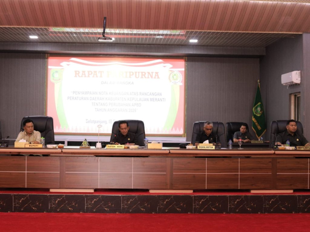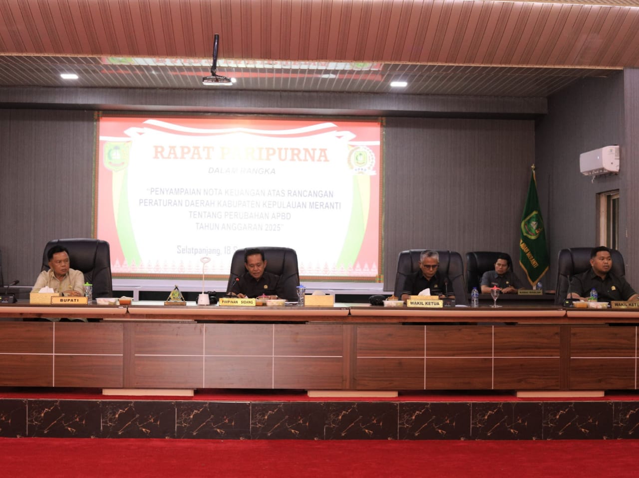 Cctv24jam. MERANTI – Bupati Kepulauan Meranti, AKBP (Purn) H. Asmar, menyampaikan Nota Keuangan Rancangan Peraturan Daerah (Ranperda) tentang Perubahan Anggaran Pendapatan dan Belanja Daerah (APBD) Kabupaten Kepulauan Meranti Tahun Anggaran 2025. Penyampaian tersebut berlangsung dalam Rapat Paripurna DPRD yang digelar di Gedung Paripurna, Kamis (18/9/2025).