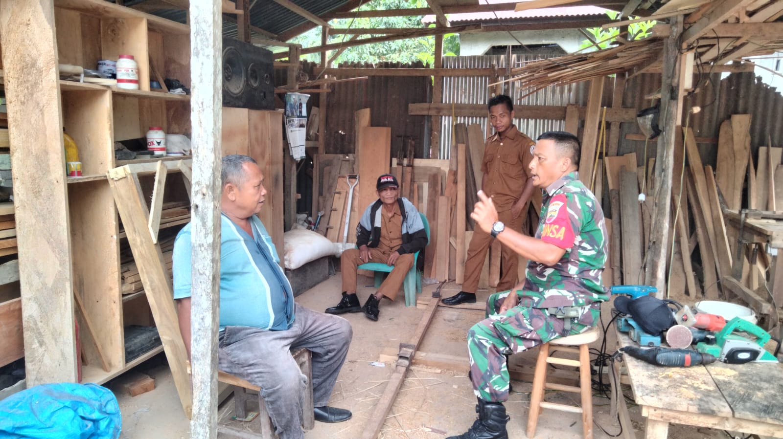 Tapteng- guna meningkatkan hubungan kerja yang baik di wilayah binaan Babinsa Koramil 01/Barus, Serka Saripuddin Panggabean melaksanakan komunikasi Sosial ( komsos ) bersama Aparat desa kepada pengrajin perabot bertempat di lingkungan 1 desa Sawah lamo kecamatan andamdewi kabupaten Tapanuli tengah.jumaat ( 03/10/2025)