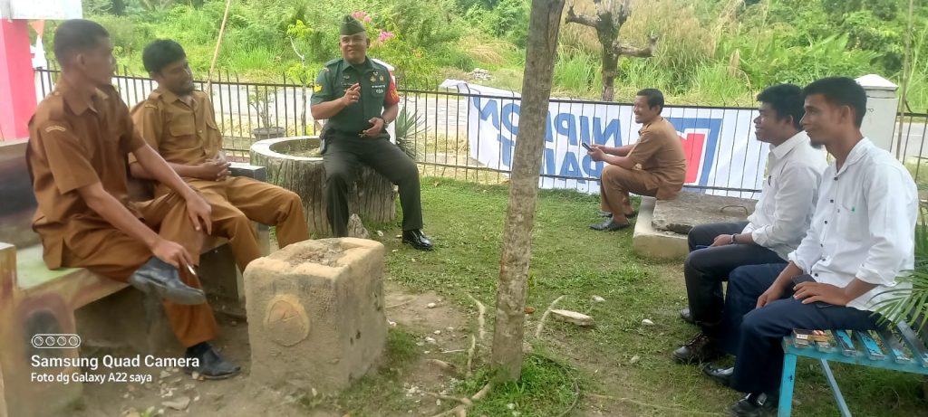 Tapteng – Babinsa Koramil 05/Kolang Kodim 0211/TT Serka Agus Triono melaksanakan kegiatan Komsos dengan tenaga pengajar di SMA Negeri 1 Kolang, Desa Unte Mungkur I, Kecamatan Kolang, Kabupaten Tapanuli tengah. Kamis (09/10/2025)