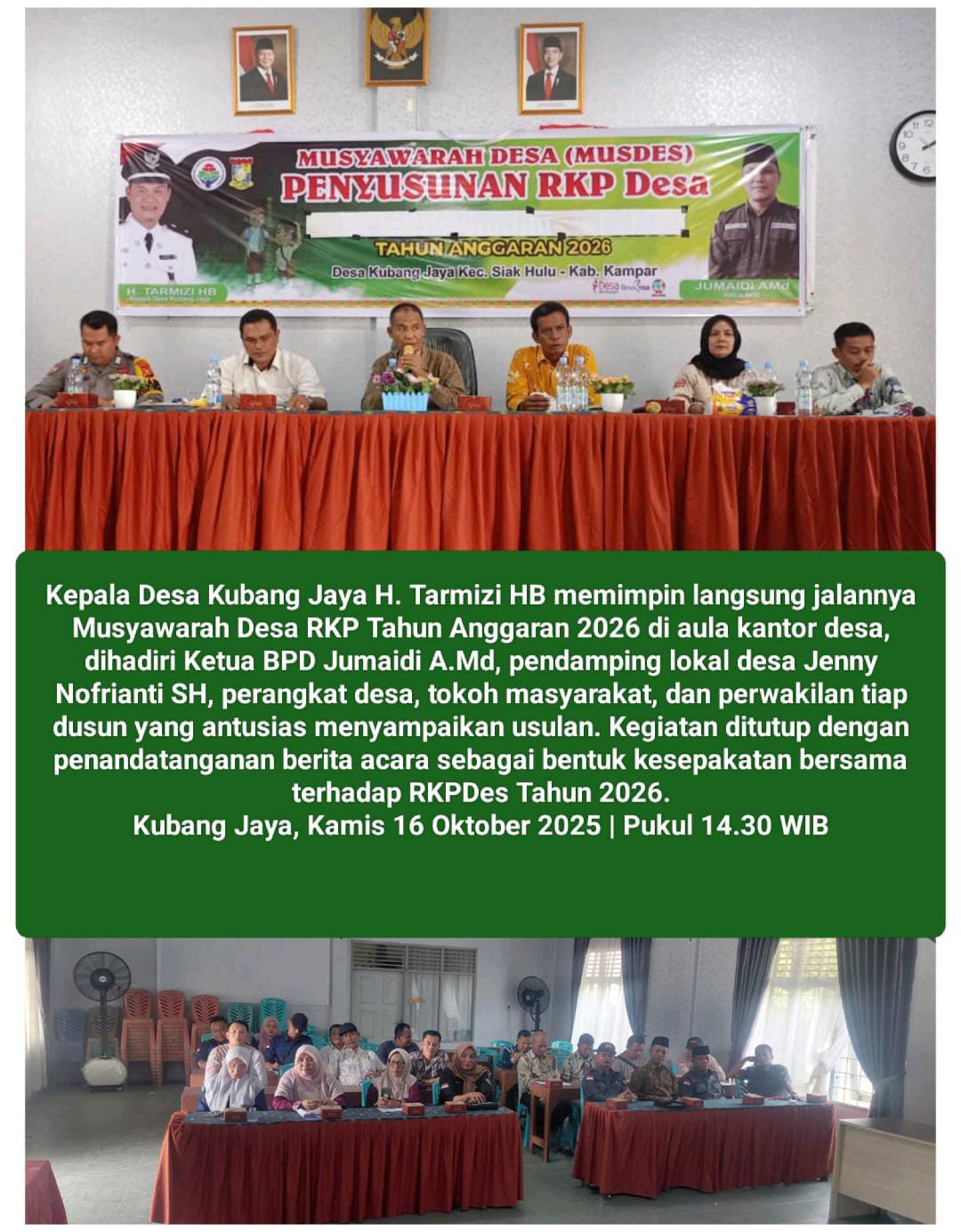 Beranda » Musyawarah Desa Kubang Jaya Tahun 2026: Kepala Desa H. Tarmizi HB Pimpin Langsung Jalannya Rapat, Wujudkan Transparansi dan Kolaborasi Menuju Tata Kelola Pemerintahan Desa yang Akuntabel, Partisipatif, dan Berkeadilan Sosial