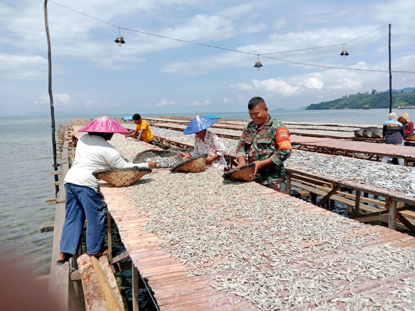 “Salah satu anggota kita membantu proses penjemuran ikan Asin yang harapannya mampu meningkatkan kesejahteraan. Lewat Babinsa,” jelas Kapten Inf Syahrial.