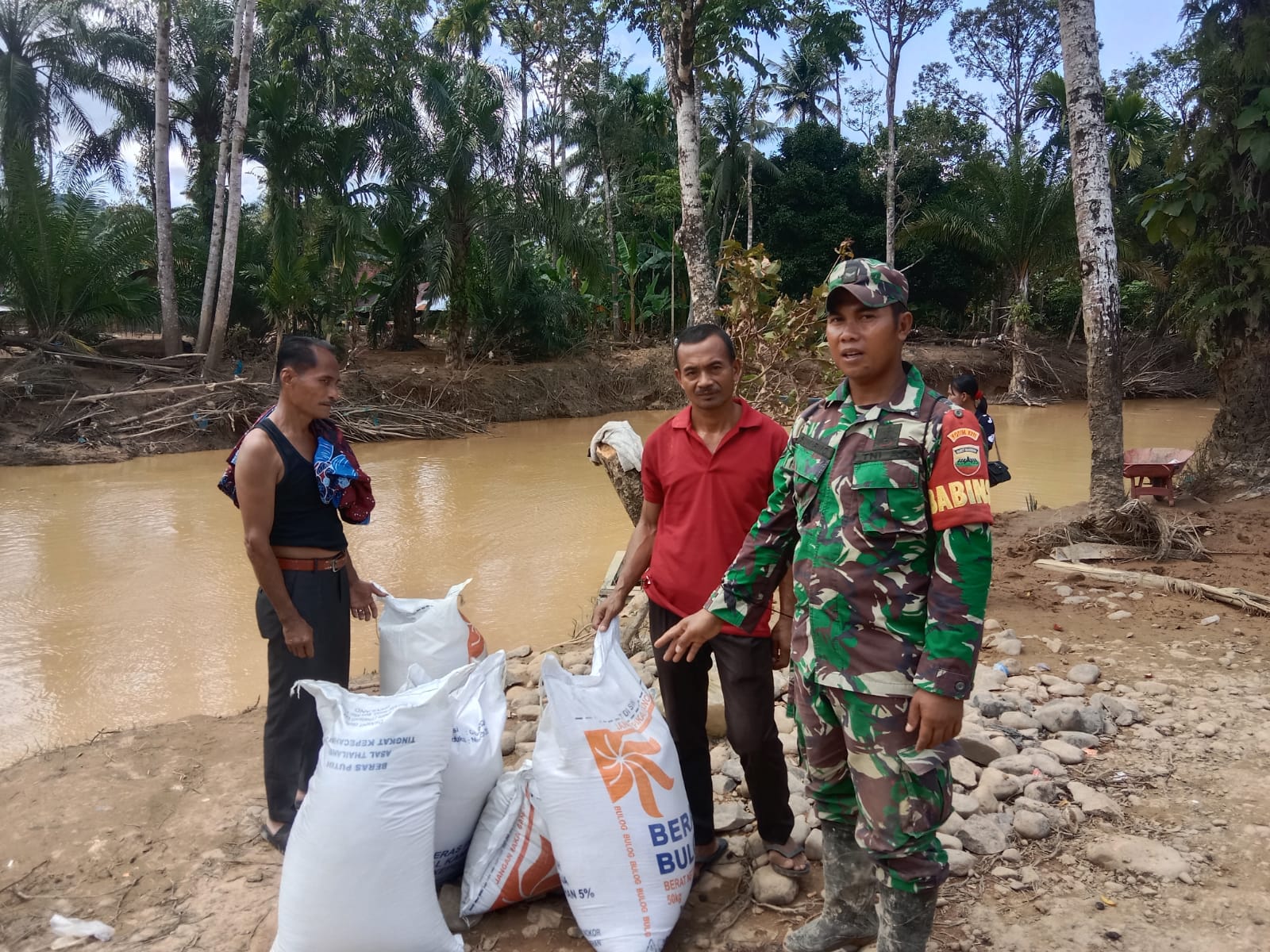 Kegiatan babinsa Koramil 04/Pinangsori, Serda Sukirno dalam pendampingan pendistribusian bansos bencana alam dengan aparat desa binaan adalah tugas pokok babinsa dalam percepat pemulihan aktivitas masyarakat yang terkena/terdampak musibah bencana alam.