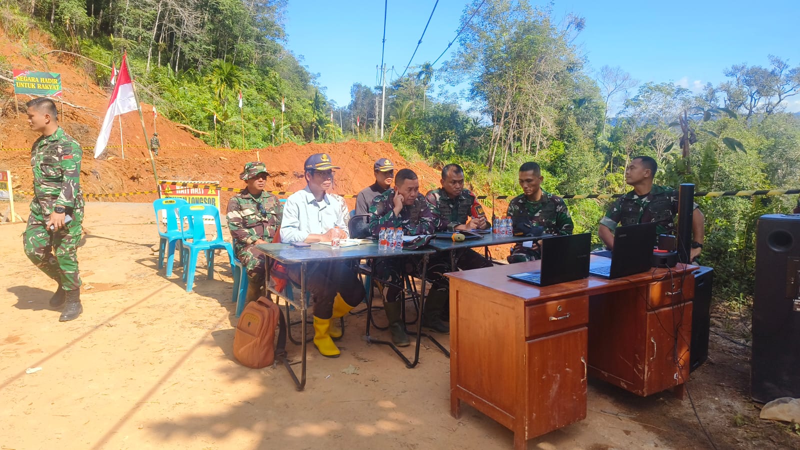 Vidcom tersebut dihadiri sejumlah pejabat dan unsur terkait, antara lain Danbrig 7/Rimba Raya, Ka Komlek Hubdam I/Bukit Barisan, Dandim 0211/Tapanuli Tengah, Danyonif 122/Tombak Sakti, Camat Sitahuis, Kepala Desa Rampah, serta Lurah Rampah. Kehadiran lintas unsur ini mencerminkan komitmen bersama dalam mempercepat penanganan dan pemulihan pascabencana.