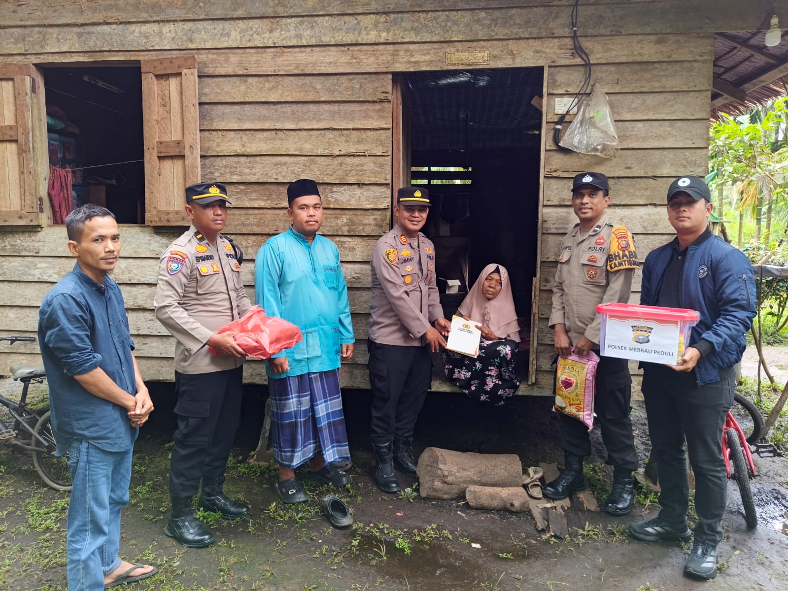 Selain itu,Bantuan dipimpin langsung oleh Kapolsek Merbau AKP Jimmy Andre, S.H., M.H., didampingi Kanit Binmas IPDA Efrianto, S.H., Bhabinkamtibmas AIPDA R.C. Sitompul, serta Banit Reskrim BRIPTU Ibnu Maulana B.P.