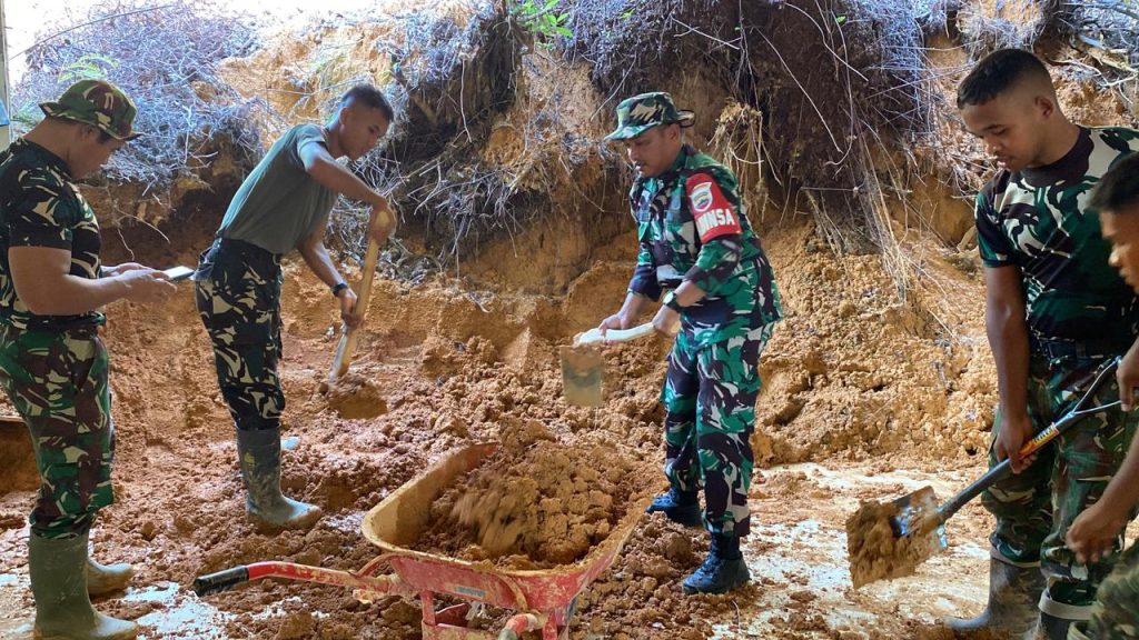 Musibah ini terjadi akibat cuaca ekstrim dan hujan deras yang terjadi sehingga mengakibatkan tanah longsor di Sekolah MTS-N, Babinsa dan beberapa personil Yon TP 905 ikut serta dalam membantu pembesihan sekolah MTS-N tersebut.