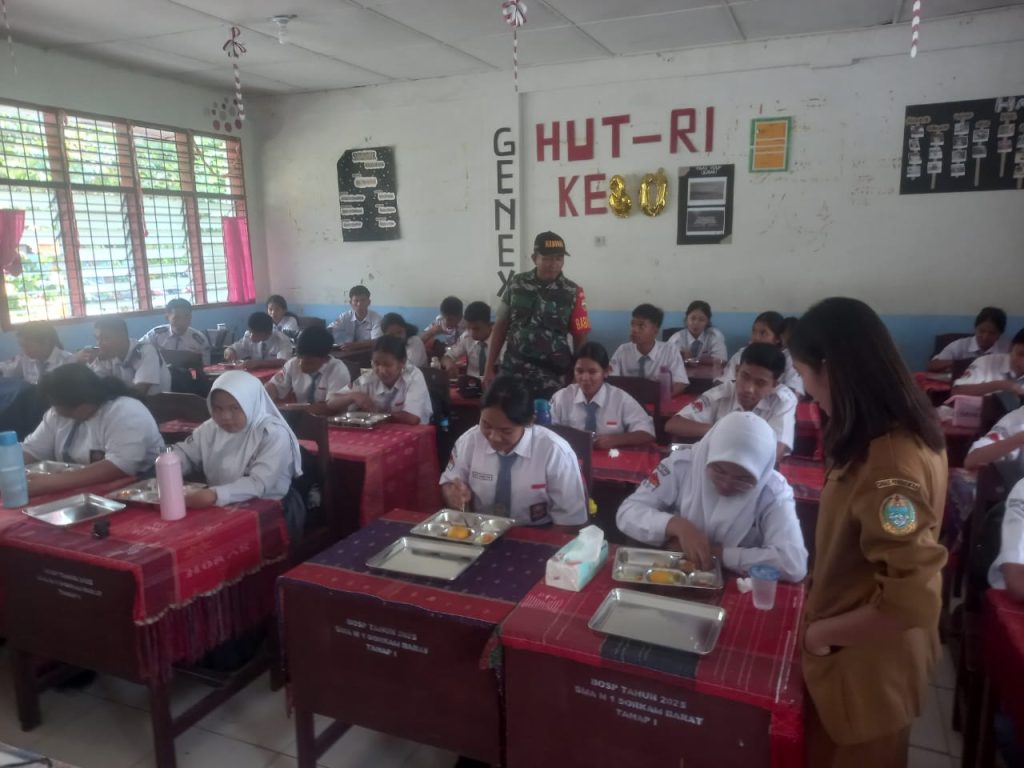 Tapteng-Babinsa Koramil 02/Sorkam,Serka.Edy Herwanto. melakukan pendampingan pembagian program Makan Bergizi Gratis(MBG) di Sekolah-Sekolah yang berada di Kecamatan Sorkam Kabupaten Tapanuli Tengah ,Rabu (28/01/2026).