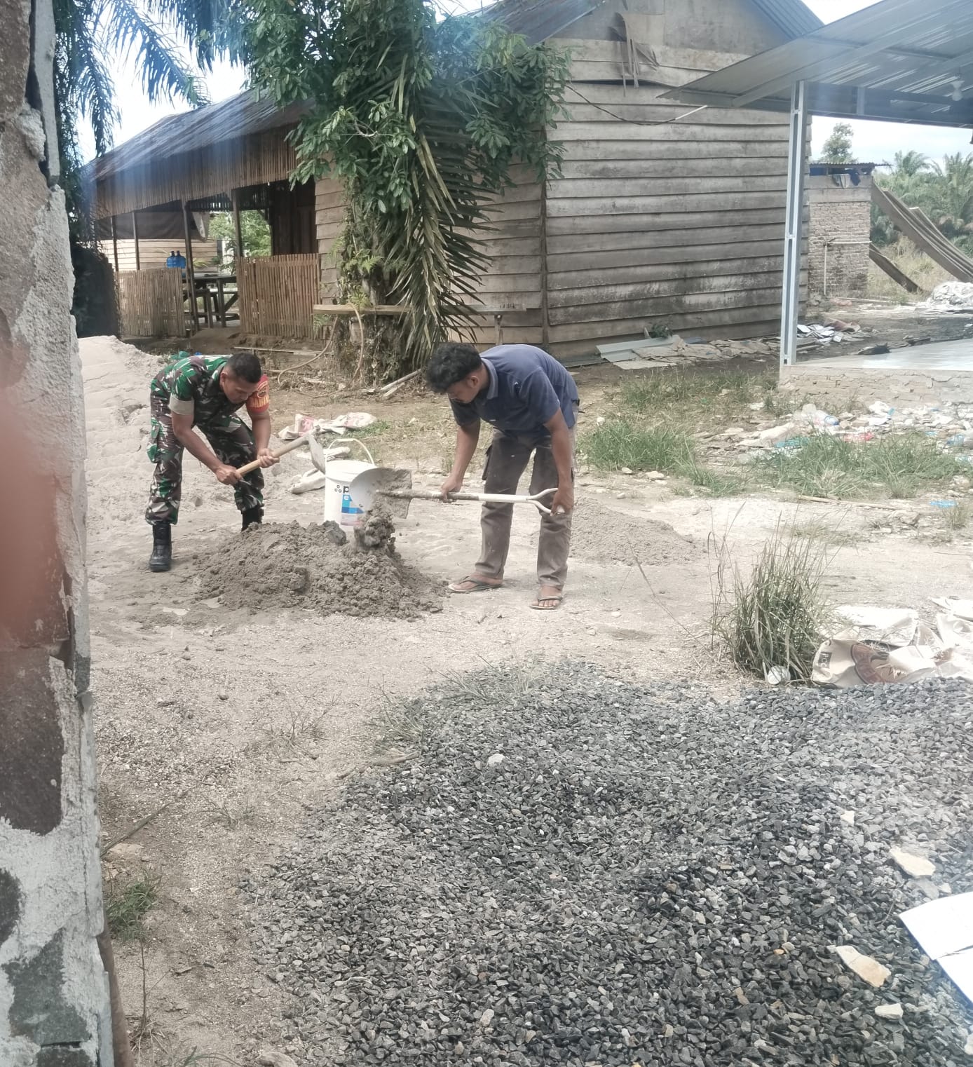 Beranda » Guna terciptanya sinergitas TNI bersama rakyat, Babinsa hadir membantu pembangunan rumah milik warga binaannya