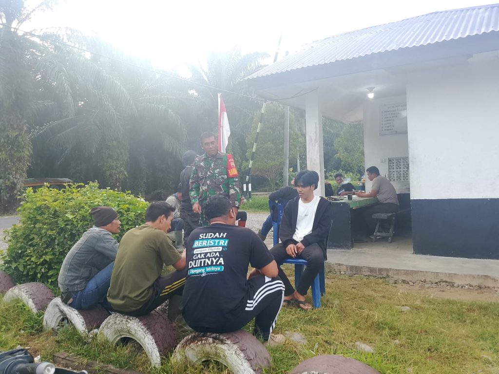 Beranda » Bangun Komunikasi Yang Baik, Babinsa Koramil 02/Sorkam Laksanakan Komsos Dengan Petugas Satpam PT NS Di Desa Binaan