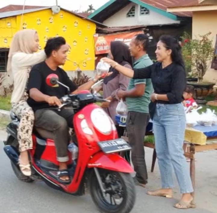 Sebanyak 400 paket takjil dibagikan kepada warga dan pengguna jalan yang melintas dari Desa Jati Baru, Minggu (01-03-2026).