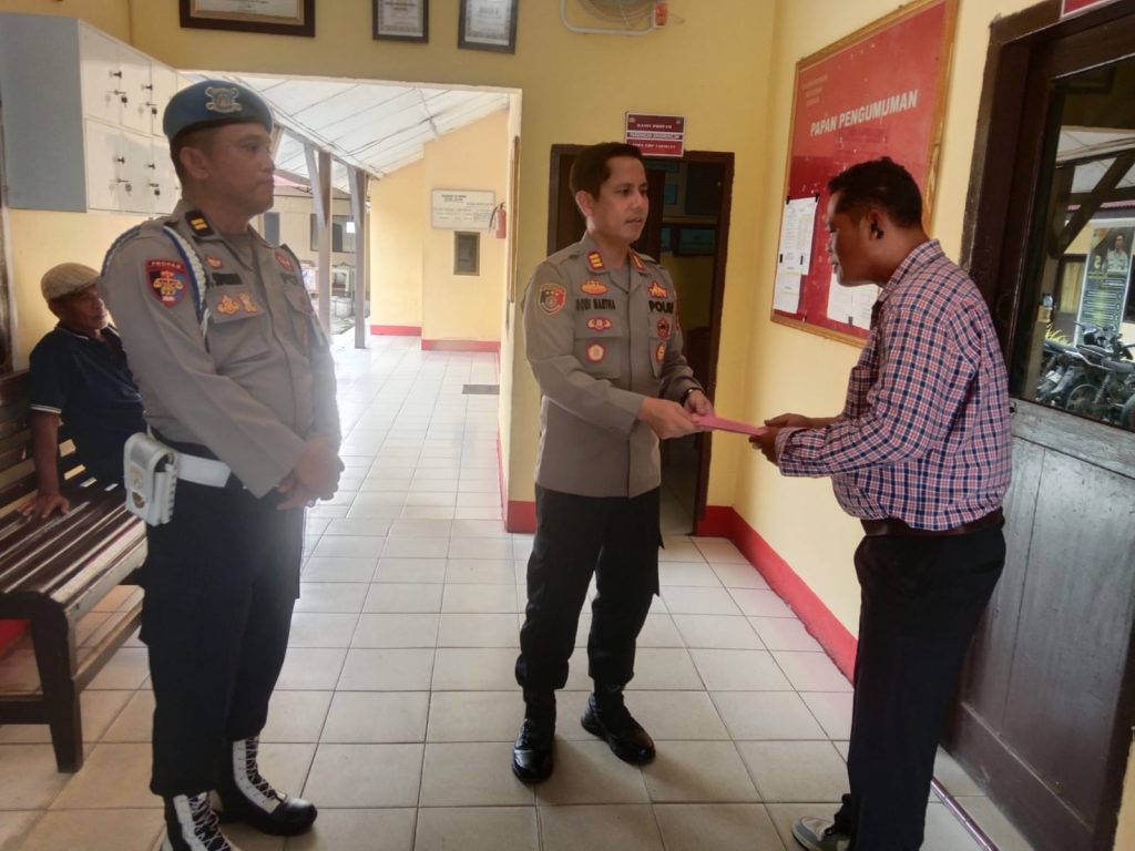 Kapolsek Galang, AKP Dodi Martha, hadir didampingi oleh Kanit Propam Iptu P. Sihombing, S.H., dan Aipda Zainal Sinaga. Dalam kesempatan tersebut, Kapolsek tidak hanya menyerahkan santunan, tetapi juga memberikan pesan-pesan penguatan agar personel yang bersangkutan tetap tabah.