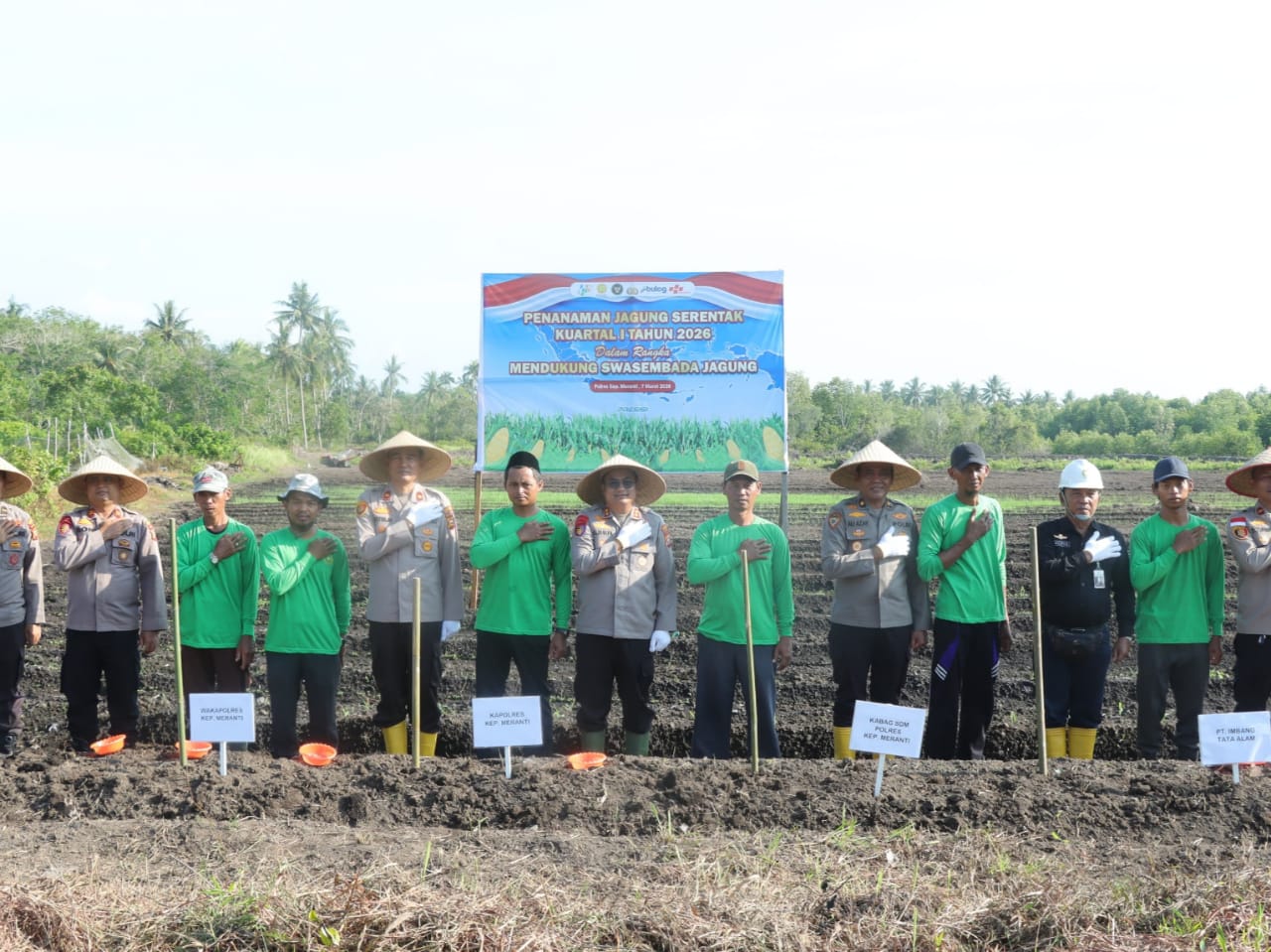 Cctv24jam. Meranti,- Polres Kepulauan Meranti bersama Polsek Wilayah Hukum Polres Kepulauan Meranti melaksanakan Kegiayan Penanaman Jagung Serentak Kuartal Tahun 2026 Polres Kepulauan Meranti dalam rangka mendukung Program Ketahanan Pangan dan Swasembada Pangan Nasional Tahun 2026 Sabtu (7/3/2026).