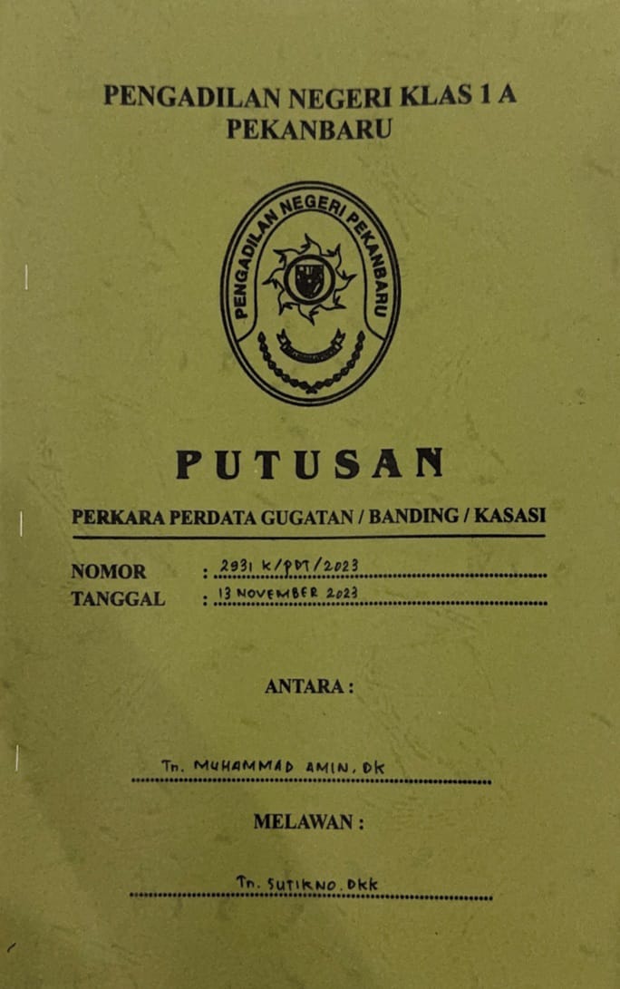 PEKANBARU – Cctv24jam.com., utusan kasasi Mahkamah Agung dalam perkara perdata Nomor 1217 K/Pdt/2023 yang mengabulkan permohonan kasasi Muhammad Amin dinilai sejumlah praktisi hukum di Riau memiliki implikasi hukum yang signifikan terhadap perkara lain yang sempat bergulir.