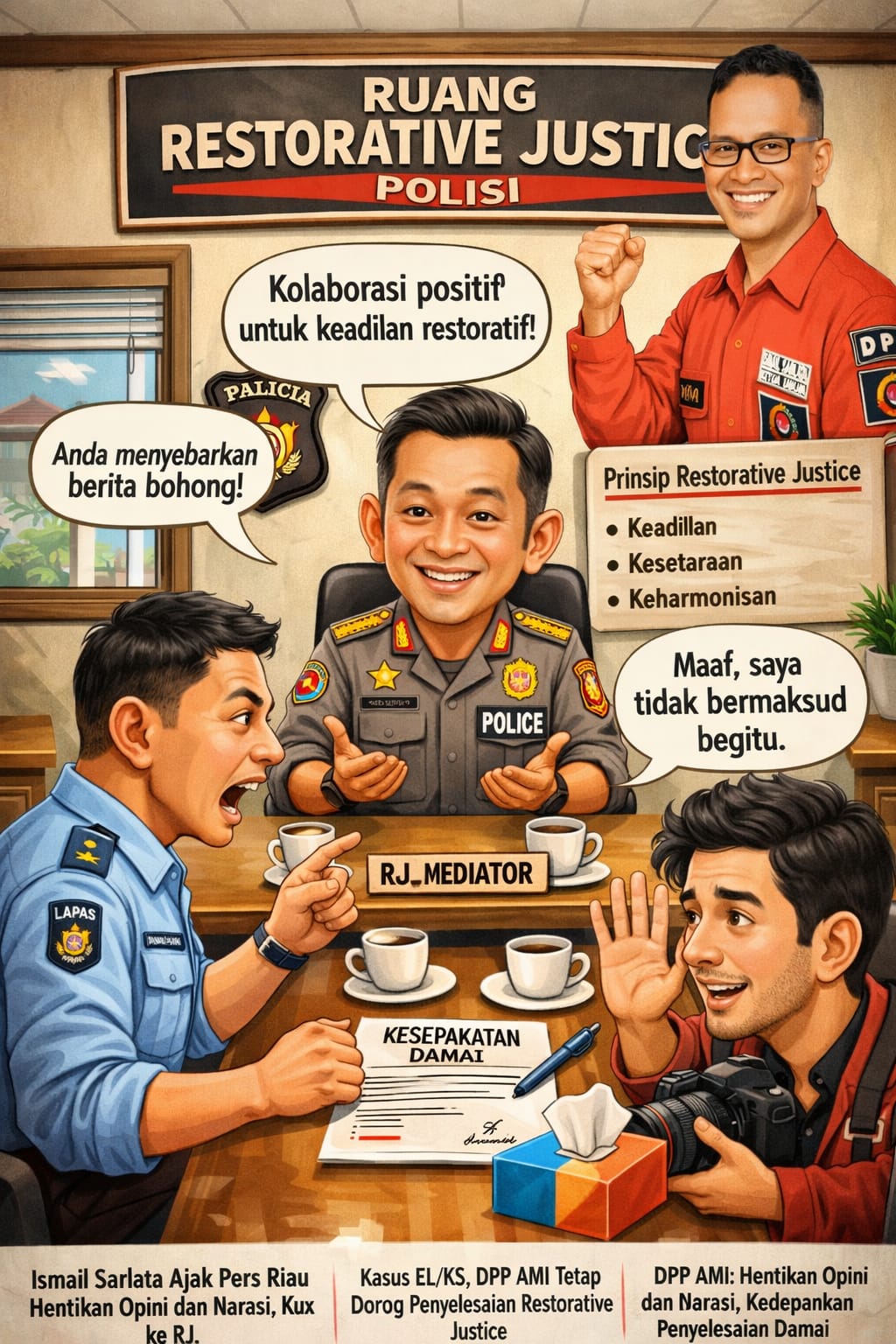 PEKANBARU — Cctv24jam.com – Ketua Umum Dewan Pimpinan Pusat Aliansi Media Indonesia (DPP AMI), Ismail Sarlata, mengajak seluruh insan pers di Riau untuk menahan diri dan menghentikan penyebaran opini maupun narasi yang berpotensi memperkeruh situasi terkait perkara yang melibatkan pihak Lembaga Pemasyarakatan (Lapas) Kelas IIA Pekanbaru dan rekan pers berinisial EL/KS.