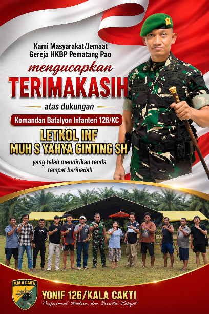 Sementara itu, Pimpinan Jemaat Gereja HKBP Pematang Pao, Pdt Eva Sinaga, S.Th, menyampaikan apresiasi dan rasa terima kasih atas bantuan yang diberikan oleh jajaran Yonif 126/KC.