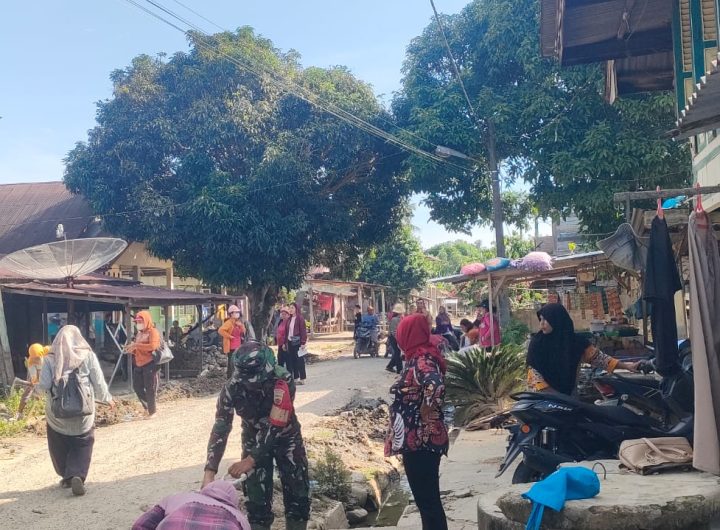 Tapteng -Babinsa Koramil 02/Sorkam Kodim 0211/TT.Serda.Rudson Aritonang. bersama dengan warga melaksanakan gotong royong bersama di sekitaran jalan...