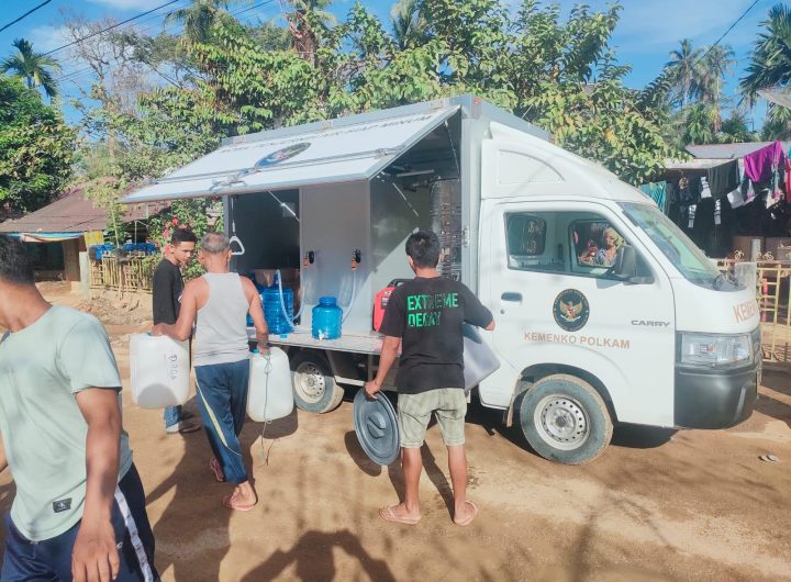 Tapanuli Tengah – Satgas Penanggulangan Bencana Alam (Gulbencal) Kodim 0211/TT menyalurkan air bersih kepada masyarakat menggunakan Mobil...
