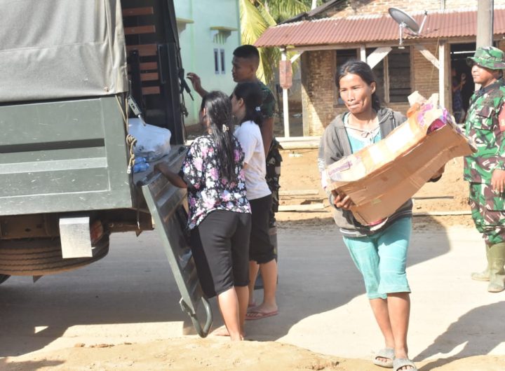 Satgas Gulbencal Kodim 0211/Tt Salurkan Dukungan Bansos Bagi Korban Bencana Alam Di Kelurahan Lopian