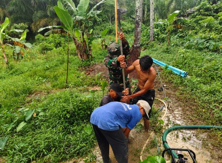 BADIRI- Babinsa Koramil 04/PS Kodim 0211/TT Serda Irfan melaksanakan pendampingan pekerjaan pengeboran air bersih bantuan dari KASAD...