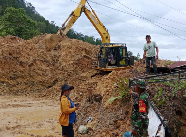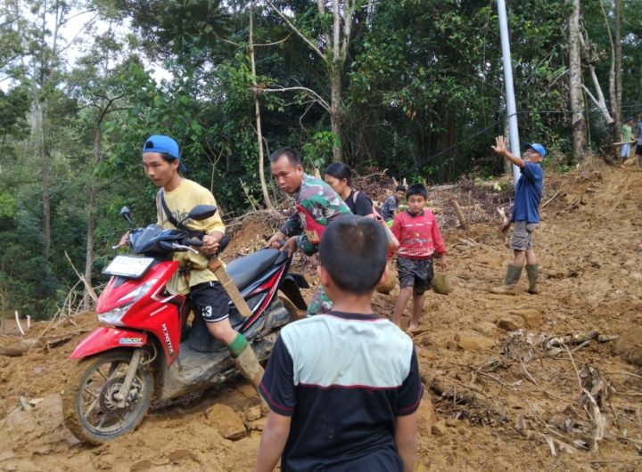 TAPTENG_ Upaya untuk mempercepat pemulihan akses jalan yang telah menutupi bahu jalan akibat longsor, Babinsa Koramil 03/Pandan...