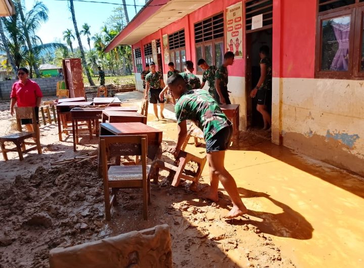Tapteng- Personil Kodim 0211/TT dan Yon TP bersama guru-guru dan siswa SD Negeri 155680 Bona Lumban, Kel....