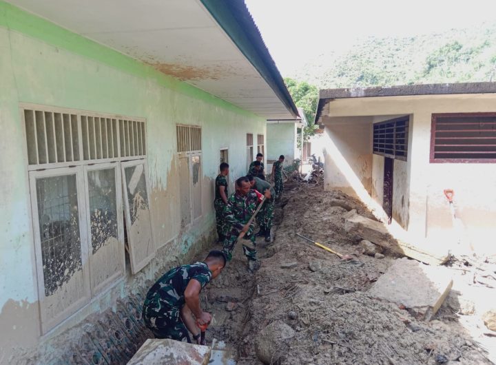Tapteng-Sertu Domu Tua Panjaitan Babinsa Koramil 06/Kota Sibolga, melaksanakan kegiatan pembersihan sisa-sisa material tanah longsor di Sekolah...