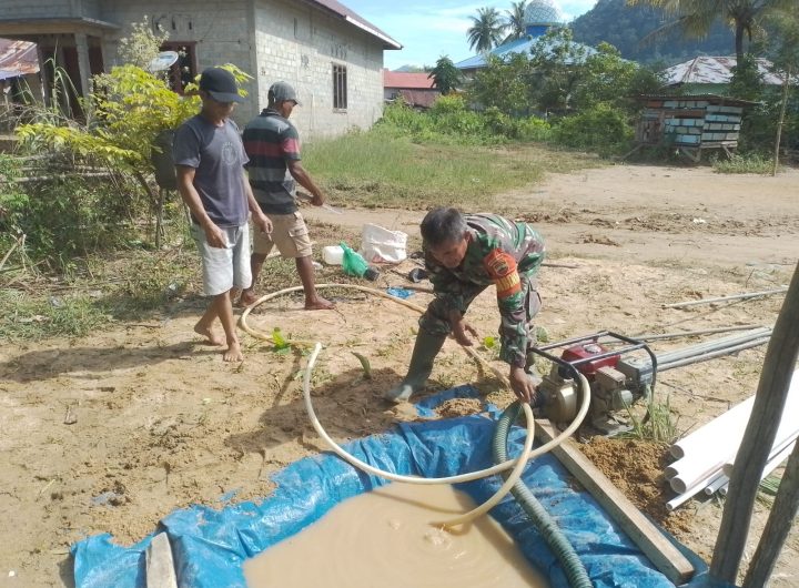 Tapteng-Babinsa Koramil 03/Pandan, Serda Al Amin Pasaribu, bersama masyarakat melaksanakan pembuatan sumur bor Bantuan Dari KASAD Jenderal...