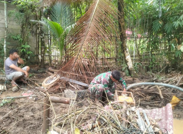 Tapteng- Babinsa Koramil 04/Pinangsori Kopka M.Purba melaksanakan pendampingan kegiatan penyaluran bantuan sembako kepada warga terdampak Banjir dan...