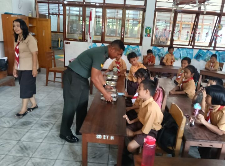 Tapteng-Babinsa 03/Pandan Kodim 0211/Tapanuli Tengah Sertu More Simbolon melakukan pendampingan pembagian program Makan Bergizi Gratis (MBG) di...