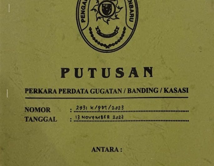 PEKANBARU – Cctv24jam.com., utusan kasasi Mahkamah Agung dalam perkara perdata Nomor 1217 K/Pdt/2023 yang mengabulkan permohonan kasasi...