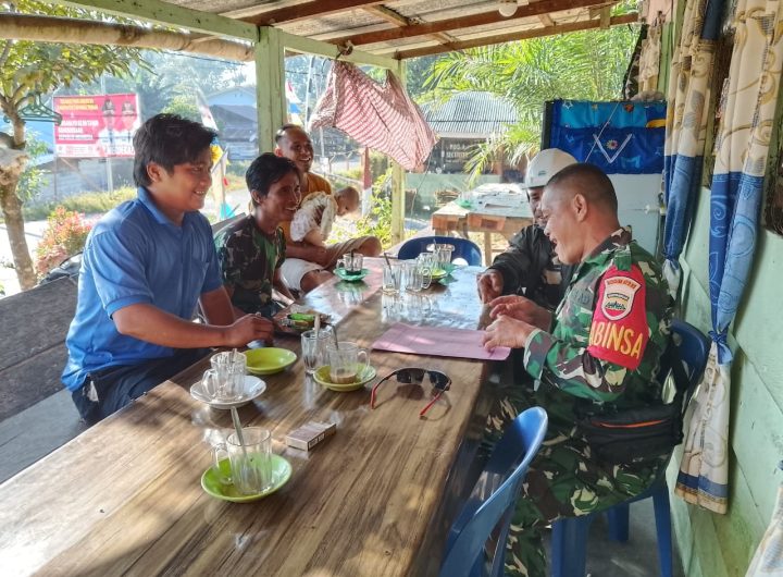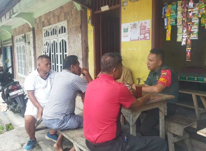 TAPTENG_ Babinsa Koramil 05/Kolang, Serda Kepler Situmorang melaksanakan kegiatan Komunikasi Sosial (Komsos) dengan warga binaan di Desa...