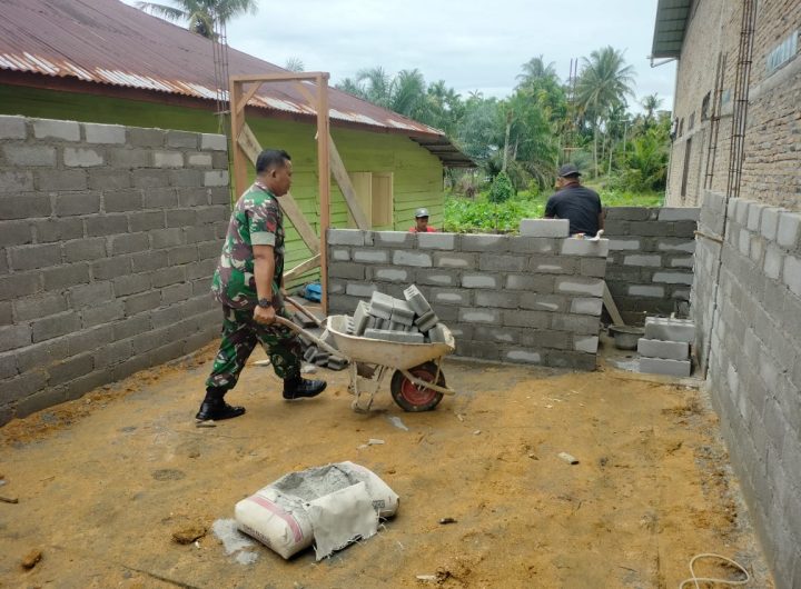 Tapteng-Babinsa Koramil 04/Pinangsori Kodim 0211/Tapanuli Tengah.Koptu M.Daud membantu pembuatan rumah milik salah satu warga di Desa Sihapas,Kecamatan...