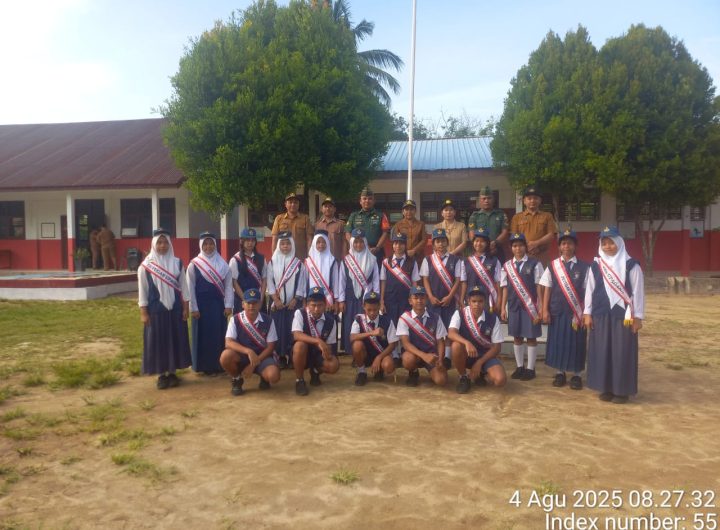Tapteng – Babinsa Koramil 05/Kolang Kodim 0211/TT Sertu Berton Situmeang melatih Paskibra (Pasukan Pengibar Bendera) tingkat Kecamatan...